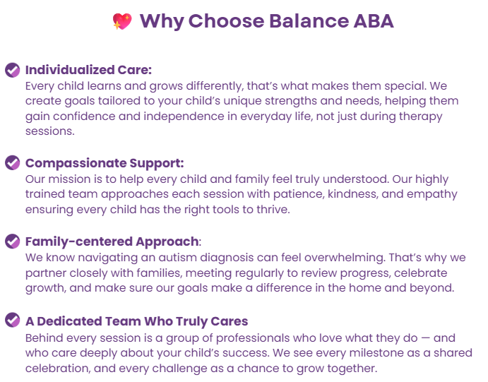 At Balance ABA, we go beyond teaching behaviors, we focus on understanding your child. We look at the why behind their challenges and create joyful, individualized learning experiences that help them grow with confidence.